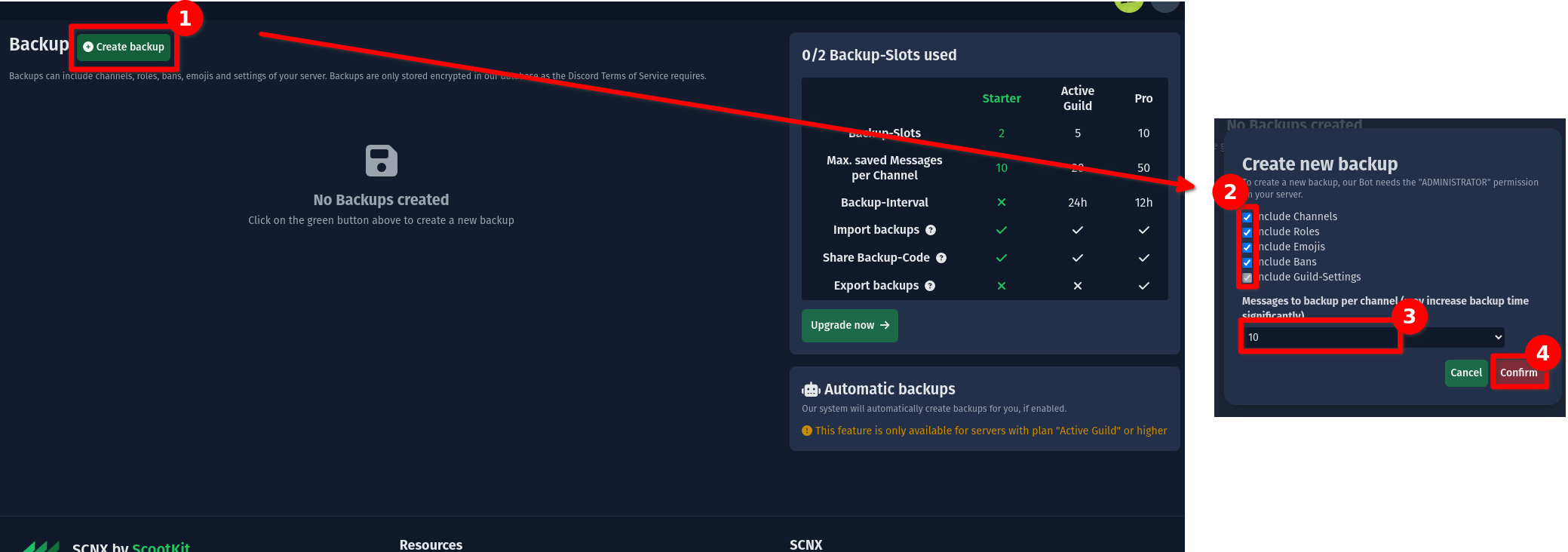 To use this feature, invite the SCNX-Bot to your server. Some feature require a separate Backups+ subscription.